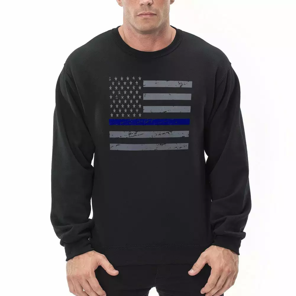 Bewild Say It Loud Police Thin Blue Line American Flag – Support Police Department Horizontal Crewneck Sweatshirt