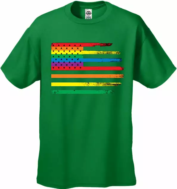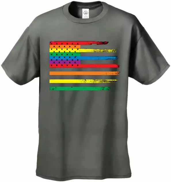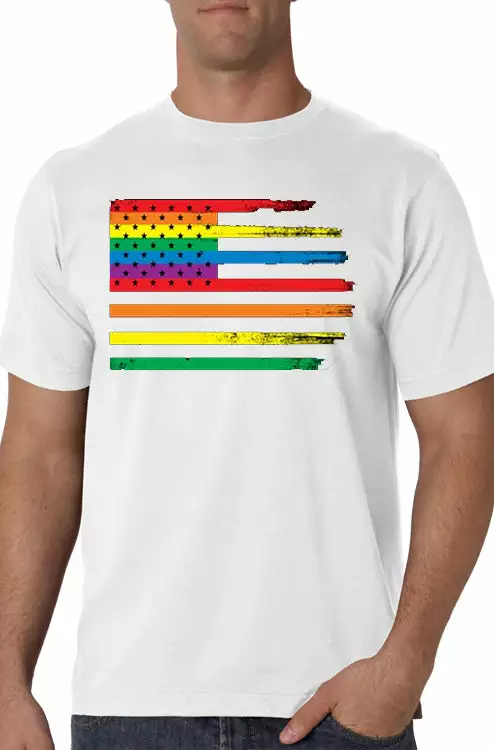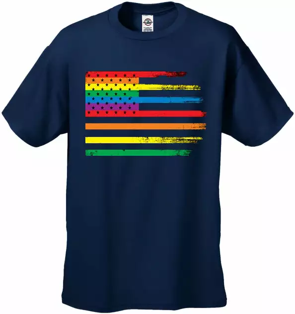 Rainbow Pride American Vintage Flag Men’s T-Shirt features a classic 100% Cotton style is a great choice for anyone’s T-shirt drawer. These Rainbow Pride American Vintage Flag Men’s T-Shirt have been printed with image on the front. These t shirts are made from heavyweight 6oz. 100% Preshrunk cotton. Looks Great, Priced right – and gets better with each washing.