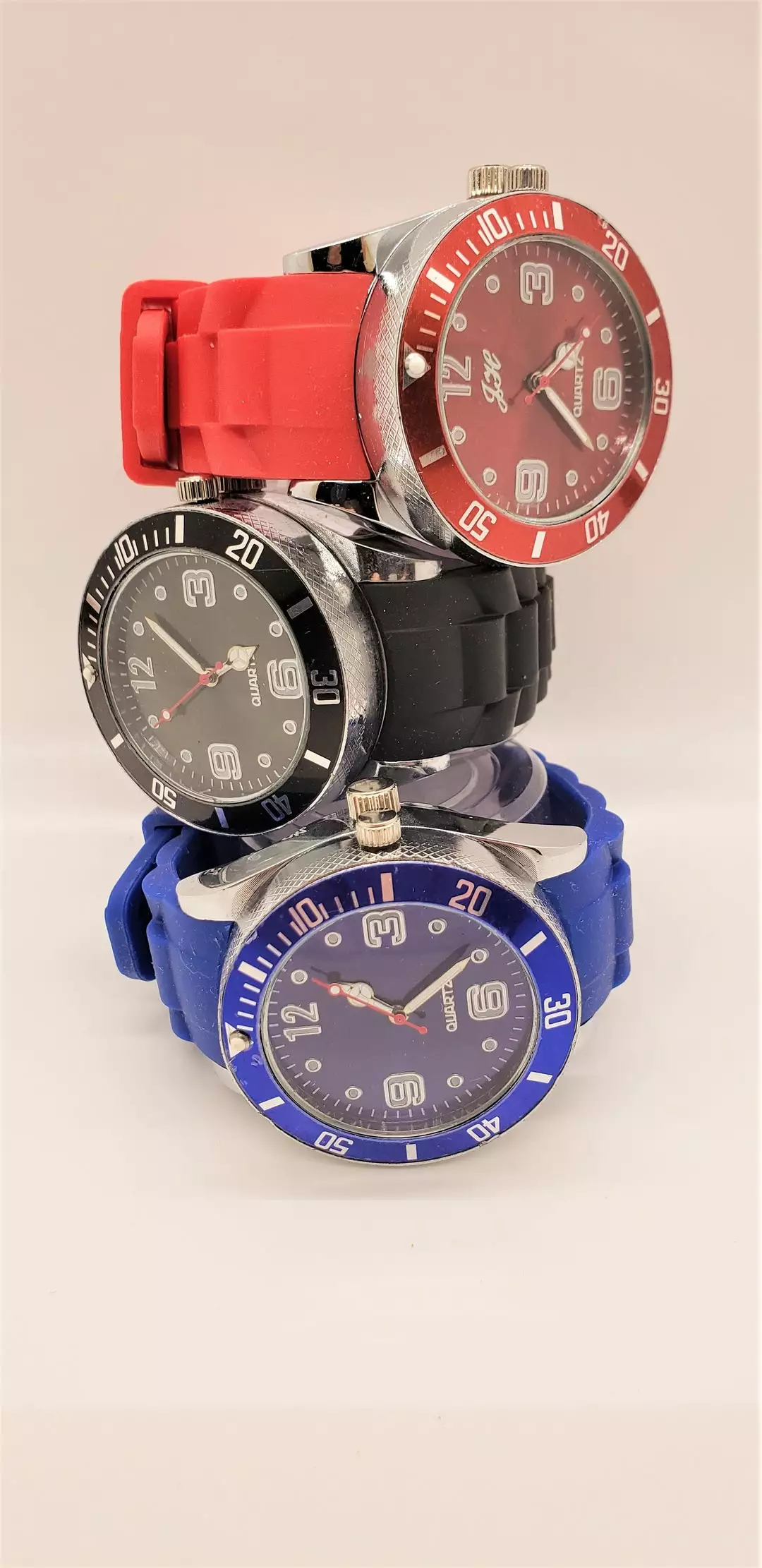 Fully Functional watch with a simple but trendy design! Band is made from a firm & strong silicone.