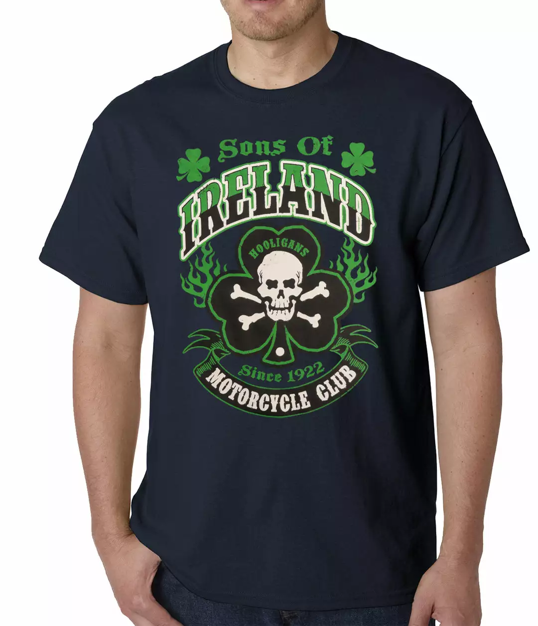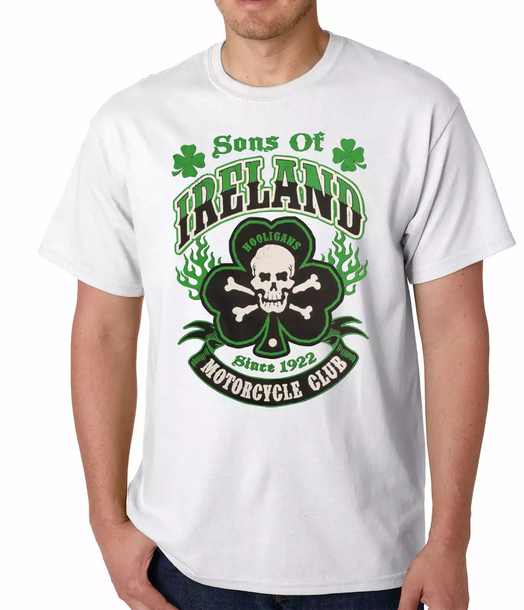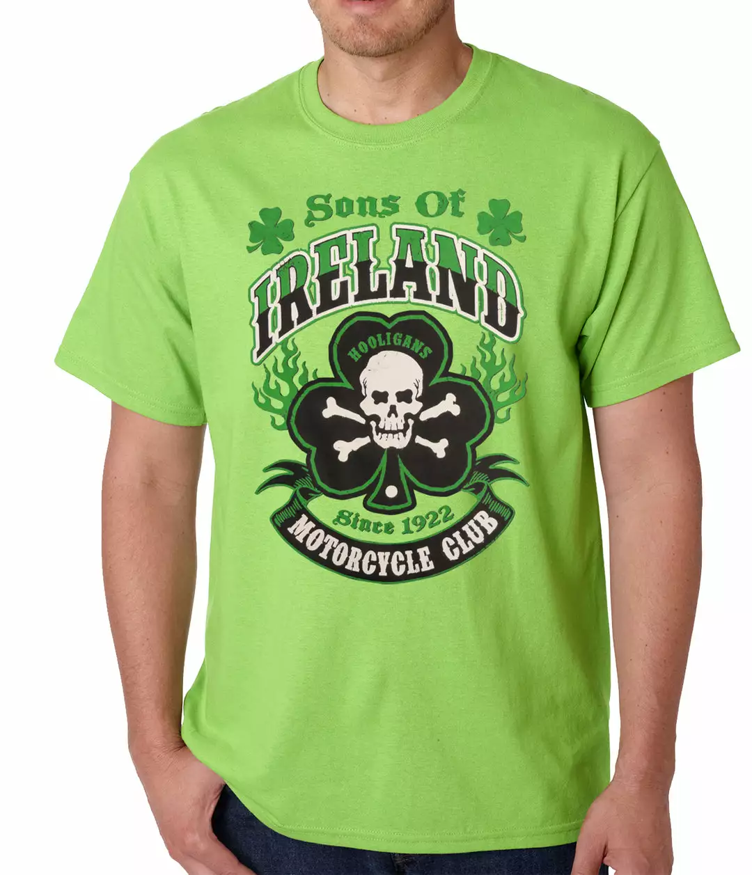 Bewild Sons Of Ireland Shamrock Skull Biker Mens T-shirt Men’s T-Shirts