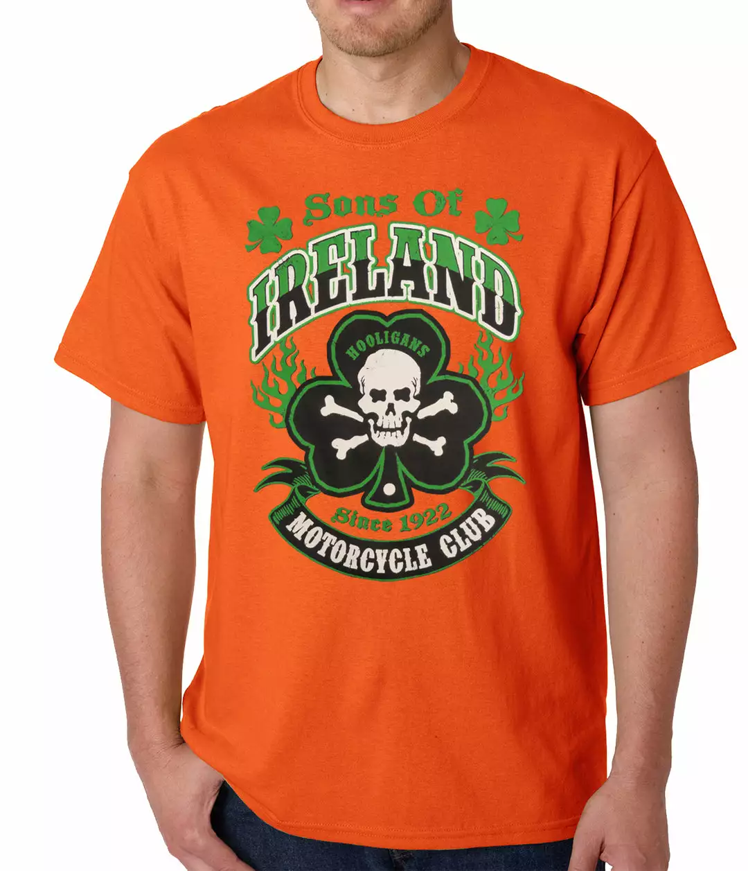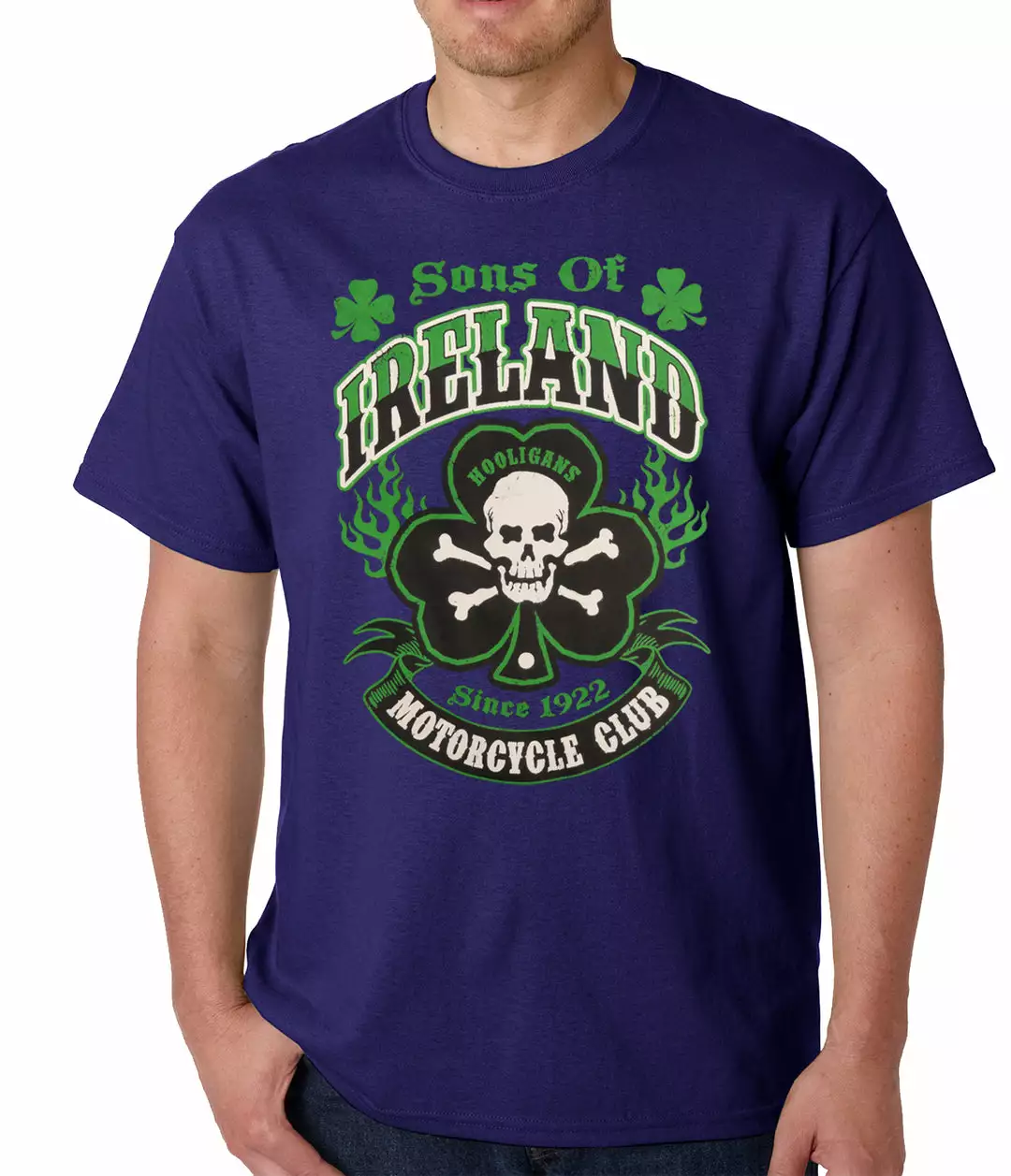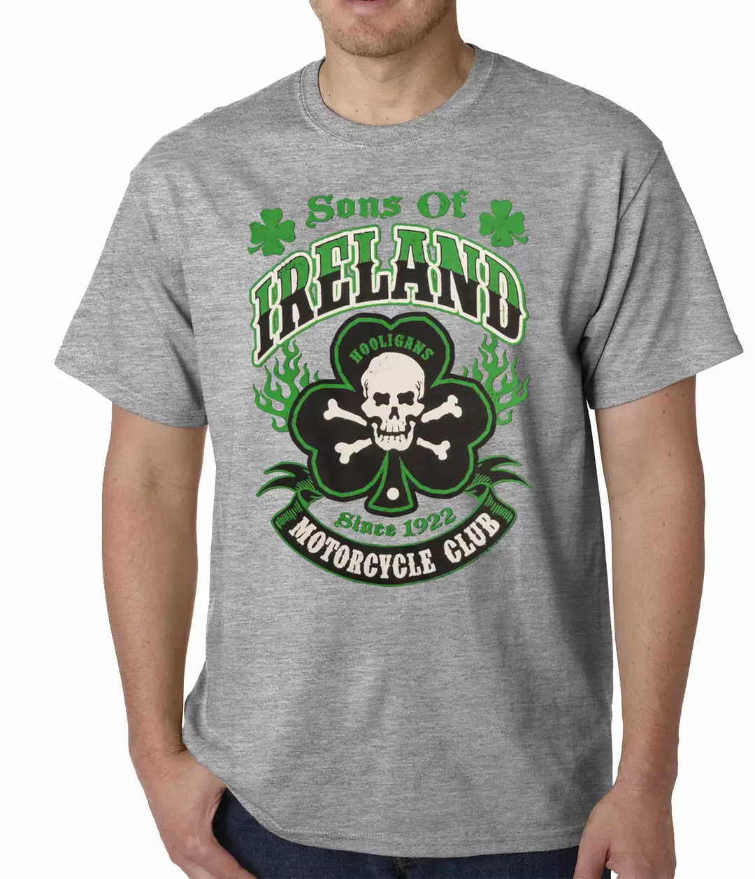 Bewild Sons Of Ireland Shamrock Skull Biker Mens T-shirt Men’s T-Shirts