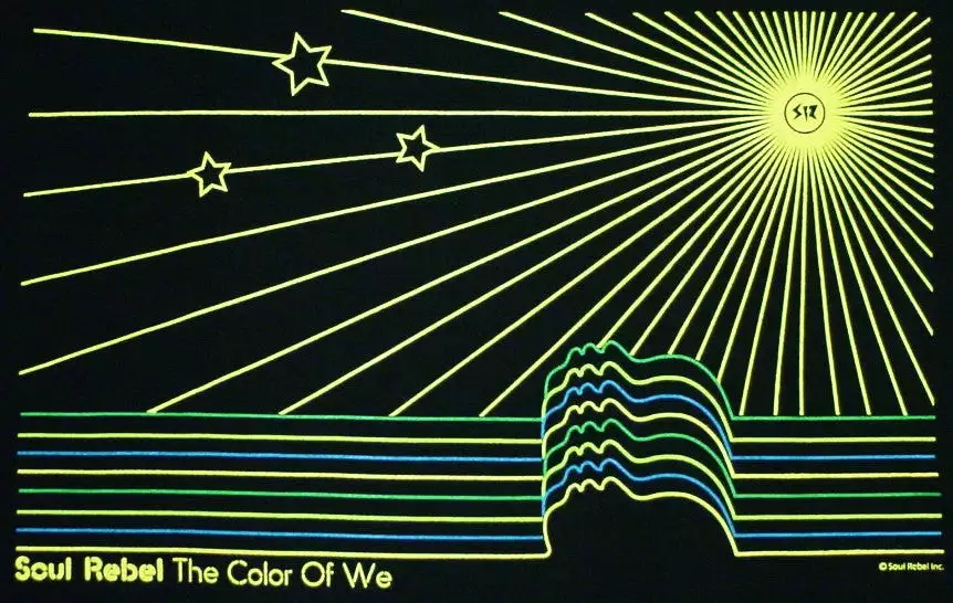 Soul Rebel Sun Burst Men’s T-Shirt. Soul Rebel has been making noise for the last couple of years now. Growing from a small collectors line to a full fledged brand. Style, character and comfort are paramount. These values are reflected in each garment that Soul Rebel produces. Our t-shirts are made from ultra soft, 100% machine washable cotton. On the front of this shirt is Soul Rebel Sun Burst Logo with overlaping faces and the words The Color Of We.