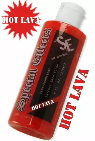 Specail Effects Hair Dye -Hot Lava. Special Effects Hair dye is available in 20 delicious semi-perminant colors. Our Amazing cream conditioning formula is made from the finest ingredients on the planet and is never tested on animals. Special Effects hair dye lasts 3 to 6 weeks on most hair. Made in the USA.