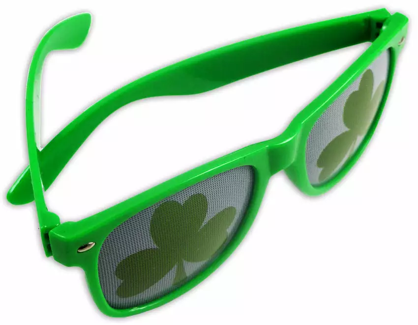 Celebrate this St. Patrick’s day in style with our brand new Green Wayfarer Shamrock Sunglasses! On the front side, the lenses are white with a green shamrock for each eye. You can see through the lens perfectly even though it looks like it might be hard. You can see everything! This is the perfect party favor for your upcoming st. patty’s day party. Show your irish pride (even if you arent irish) and get these awesome green shamrock sunglasses!