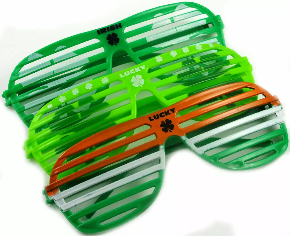 Rock it out this St. Patrick’s Day 80’s style with these awesome slotted shades! These Slotted Shade Sunglasses are St. Patrick’s Day themed to celebrate the St.Patrick’s day holiday. Get in the spirit and party hardy this march 17th! These glasses are the must have accessory for you st.patrick’s day outfit! Get it a bunch and give them to your friends! They also makes a great giveaway for bars and clubs and they also make fantastic party favors at your St.Patrick’s day get together. This item ships assorted.