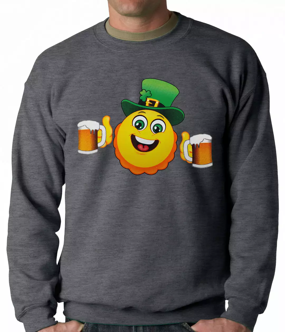 Bewild St.Patricks Day Irish St. Patrick’s Day Drinking Leprechaun Emoji Adult Crewneck