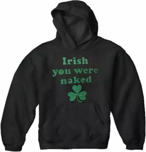 Irish You Were Naked (Dark Green Print) Adult Hoodie. A sporty hooded pullover that will always look smooth, thanks to our pill-resistant fleece.