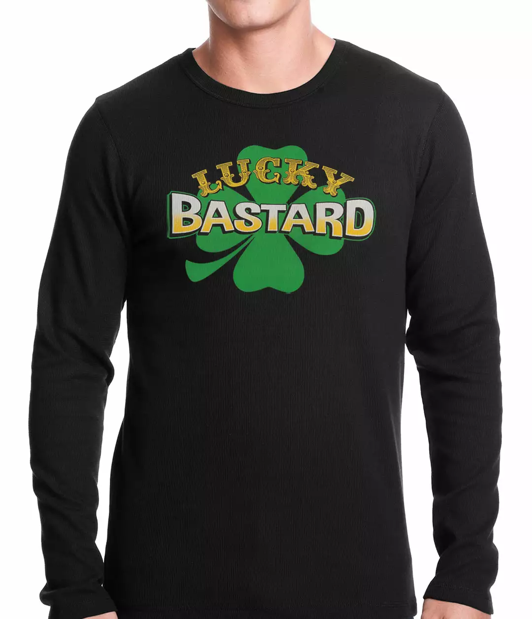 Bewild St.Patricks Day Lucky Bastard Irish Shamrock Thermal Shirt
