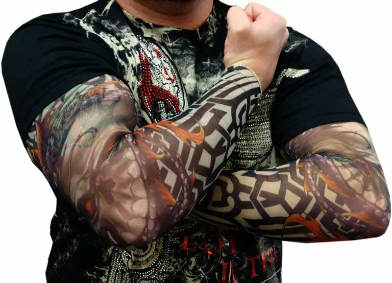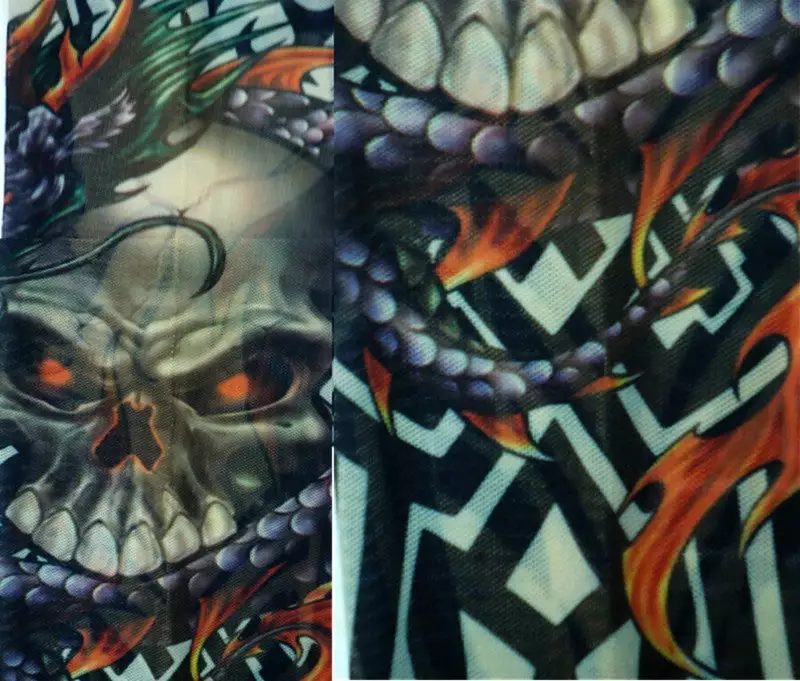 Tattoo Sleeves – Tribal Biker Pair of Tattoo Sleeve. Introducing the NEW Tattoo Sleeve fashion accessory! Anyone that wants the cool tattooed look without the commitment (and pain) of getting a permanent tattoo will love these! This design features a sharp tribal design with a nasty skeleton. These are perfect for men and woman.