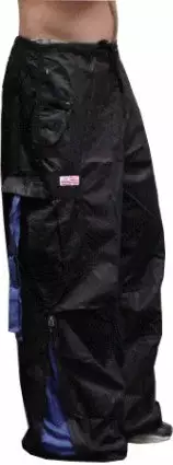 The world Famous unisex UFO Pants are made of 65% polyester, 35% cotton and are fully machine washable. These Black and Royal Blue UFO Pants have expandable wide leg bottoms! The bottoms on these UFO pants unzip and expand from 22” to 32” with a royal blue inserts and straps in cargo pockets. Once you wear these most comfortable pants, you’ll never wear anything else again!
