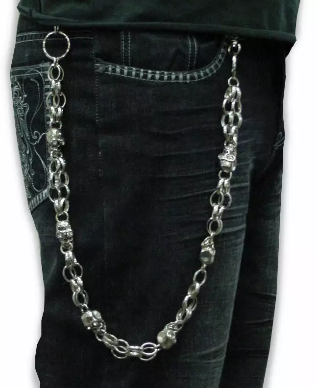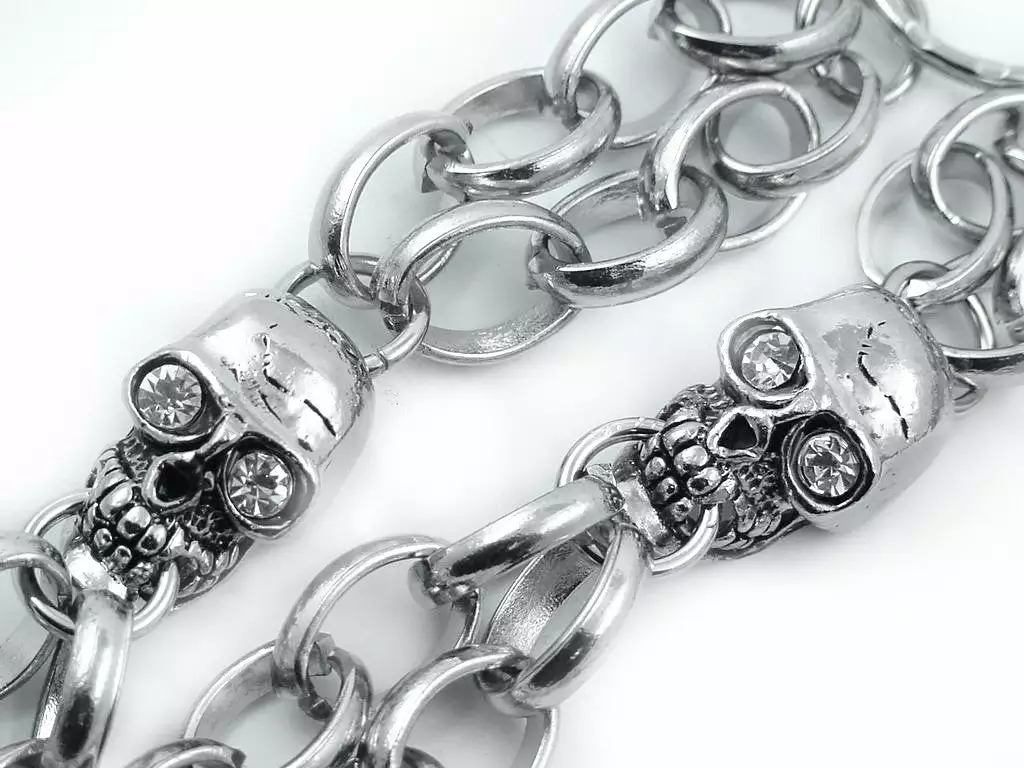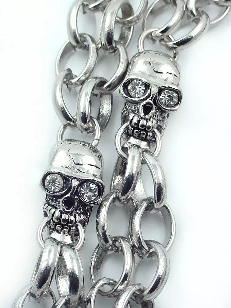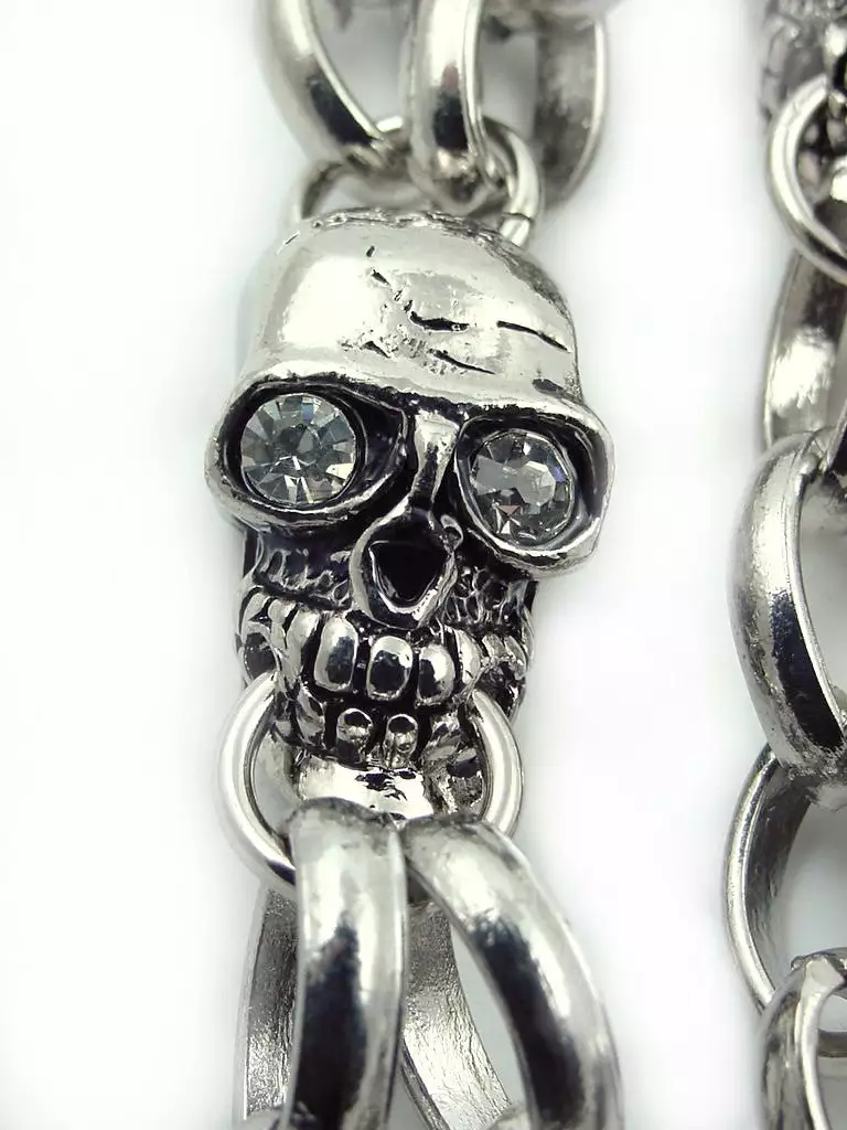 Gem Skull Jean and Wallet Chain. Premium quality jean chains are here at bewild! Use a jean chain as a cool accent to any pair of jeans or use them as a stylish addition for any chain wallet. Never lose your keys! Our jean chains feature a heavy duty key loop perfect for attaching your keys. Your keys will always be safe by your side, impervious to theft and loss. Both ends of this jean chain are easy to remove for fast access to your keys or wallet. These jean chains will change the look of your jeans and your style and can be easily removed and re attached so you can wear them with ANY pair of pants!
