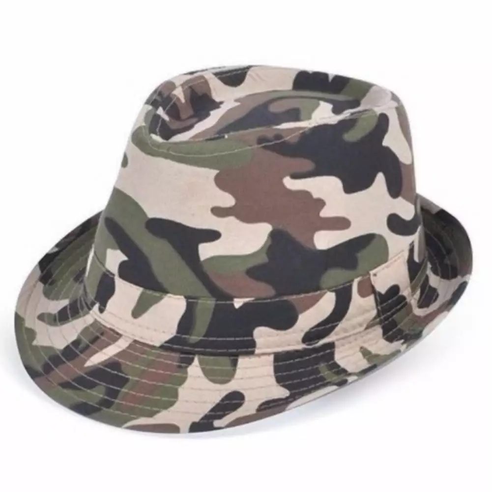 Woodland Camouflage Fedora Hat. The fedora hat is creased lengthwise down the crown and pinched in the front on both sides. Similar hats with a C-crown (with an indentation for the head in the top of the crown) are occasionally called fedoras. The term fedora was in use as early as 1891. Beginning in the 20th century, the fedora came into use as an upper-class clothing accessory. Hats that resemble the soft felt version are often called fedoras even if they are made of straw or twill. This Fedora hat is made of 100% cotton and has a woodland camo pattern. Perfect for a night out on the town! One size fits all.