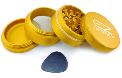 The EZ Grind does a great job of balancing both quality and affordability. It compares to any premium grinder you can find but comes at a lesser cost to you. It has a sturdy Zinc build and a centered magnet at the top of the grinder to keep the grinder sealed so you don’t spill any material and it can double as a storage space. This 4 piece grinder has a standard pollen screen and a deep dish for collection.